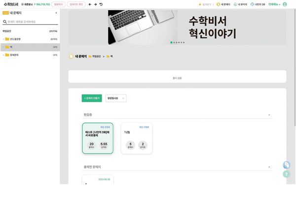 현재는 기존에 선생님들이 하시던 출처 찾기, 적중률분석, 유사시험지 만들기, 문제검색, 정렬, 편집, 문항별 자기영상배포(QR) 등의 업무를 자동화하였는데요. 앞으로는 학생별 학습기록부터 공지, 결제 등 모든 업무를 수학비서 하나에서 하실 수 있으실 거라고 생각합니다.