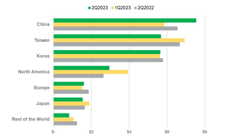 지역별 반도체 장비 매출액 (출처: SEMI & SEAJ, Sep 2023)