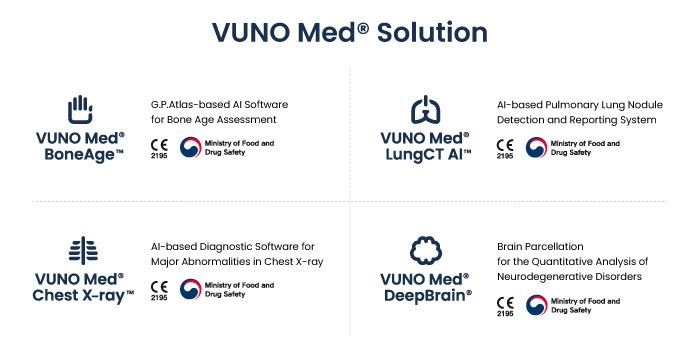 뷰노는 부스 전시를 통해 의료영상 분야 주요 제품 4개를 선보인다. 전시 항목에는 ▲뷰노메드 본에이지™ ▲뷰노메드 흉부CT AI™ ▲뷰노메드 체스트 엑스레이™ ▲뷰노메드 딥브레인®이 포함된다. 각 제품은 영상의학 의료진에게 최적화된 워크플로우를 제공하고 판독의 정확도와 효율성을 높이는 AI 의료기기다.