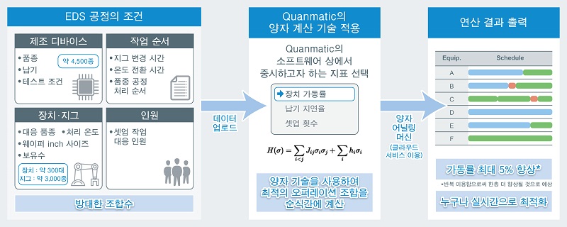 현재 다양한 분야에서 양자 기술의 활용이 시도되고 있다. 특히 양자 어닐링 방식은 물류 업계의 배송 루트 최적화 등 조합 최적화 분야에서 도입이 활발하다. 그러나 반도체 업계에서는 대규모 제조 공정일수록 조합의 수가 지수함수적으로 증가하고, 제약 조건이 다수 존재하기 때문에 최적해를 얻기가 어려워 고전 컴퓨터에서도 근사적으로 연산 가능한 규모의 공정에만 도입됐다.