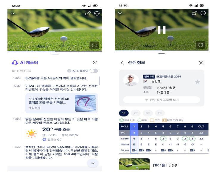 SK텔레콤, 생성형 AI 활용해 중계 해설 및 골프 상식, 날씨 등 알려주는 ‘AI 캐스터’ 기능 선봬