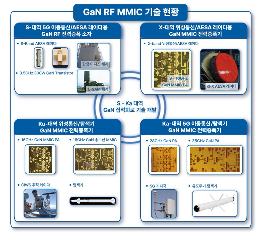 ETRI는 보유하고 있는 4인치 GaN 반도체 제작 일괄공정기술 및 생산 팹(Fab)을 활용해 해외업체와 대등한 수준으로 기업에 서비스한다. 연구진은 소자의 성능을 획기적으로 끌어올려 Ka-밴드 주파수 대역까지 지원하는 MMIC 제작이 가능하다. PDK를 제공해 사용자 맞춤형 파운드리 서비스 지원이 가능케 된 셈이다.