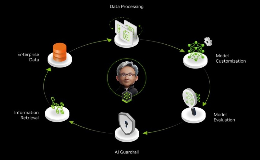 엔비디아 네모 마이크로서비스는 네모 커스터마이저(Customizer), 네모 이밸류에이터(Evaluator), 네모 가드레일(Guardrails)을 포함한다. 이는 네모 리트리버(Retreiver), 네모 큐레이터(Curator)와 함께 사용돼, 맞춤형 엔터프라이즈 데이터 플라이휠을 통해 AI 에이전트를 구축하고, 최적화하며, 확장하는 과정을 기업이 보다 수월하게 수행할 수 있도록 지원한다.