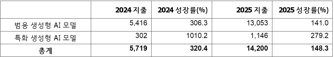 [전망] 올해 전 세계 생성형 AI 모델 지출은 작년대비 2.5배 증가해