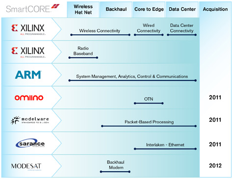 자일링스는 차세대 스마터 네트워크 및 데이터 센터를 타깃으로 하는 ASIC 및 ASSP 공급 격차를 해결하기 위한 솔루션을 발표했다. 날로 커지는 격차를 줄이기 위해 자일링스는 자사의 올 프로그래머블 FPGA, SoC 및 3D IC를 사용하는 주요 애플리케이션 전문가 및 서비스와 SmartCORE™ IP 포트폴리오의 확보 및 개발에 힘을 쏟고 있다. 자일링스의 새로운 솔루션은 고가용성, 저지연, 저지터, 고품질 서비스(QoS)를 통해 지능형 구조 중심의 데이터 센터 및 SDN(소프트웨어 정의 네트워크), LTE 및 LTE 어드밴스드(Advanced) 무선 HetNet용 "다중 대역(many-band)" SON(자동 구성 네트워크), 400G 및 Nx100G OTN 솔루션을 신속하게 개발, 차별화 및 진화시키고자 하는 고객을 대상으로 한다.