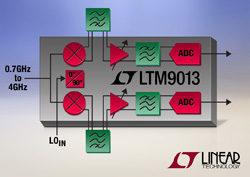 모바일 사용자가 요구하는 데이터량이 증가함에 따라, 차세대 기지국은 최고 60MHz의 더 높은 전송 대역폭을 달성할 수 있도록 설계되고 있다. 60MHz의 전송 대역폭을 선형화하기 위해, 선형화 알고리즘을 위한 전치왜곡(predistortion) 피드백 루프는 300MHz까지의 5차 혼변조(intermouulation) 신호를 처리해야 한다. 5차 혼변조 왜곡을 디지털화하는 과정은 매우 평평한 통과 대역을 통해 매우 폭넓은 대역폭, 저잡음 리시버를 필요로 한다. LTM9013은 전체 대역에 대해 1.3dB 이하의 통과 대역 리플 특성을 가지는 300MHz 로우패스 필터를 포함한다. DPD가 피드백 루프이기 때문에, 리시버(전송 관찰 경로 리시버로도 불림)는 낮은 레이턴시 및 PA에서 더욱 향상된 고속 루프 리드의 효과를 제공하며 따라서 더욱 낮은 전력 소비의 장점이 있다. LTM9013에서 ADC는 레이턴시가 5개 클록 사이클에 불과하다.