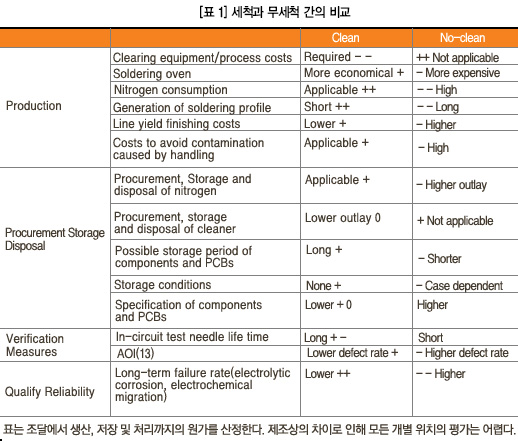 이처럼 무세척은 기후적(climatic) 스트레스에 전혀 노출이 되지 않는 기판이나 혹은 실제적으로 제품 불량이 예상되는 경우에나 적용이 가능할 수 있다.