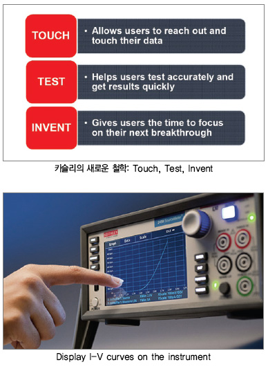 키슬리의 2450 SourceMeter SMU 계측기는 직관적인 터치스크린 및 아이콘 기반 제어 기능과 다기능성을 결합한 제품으로 다변화되고 있는 측정 환경에서 큰 장점을 가진다. Jonathan Tucker 선임 마케팅 및 제품 담당자는 “오늘날 소수 엔지니어만이 깊이 있는 테스트 측정 교육과 경험을 가졌고, 젊은 엔지니어는 하드웨어보다 소프트웨어를 지향해 업무 기술이나 지식이 부족한 경향이 있다”며 “2450 SMU는 멀티터치 인터페이스를 통해 빠른 응답과 즉각적인 정보를 제공해 고객 편의를 배가시켰다”고 말했다.
