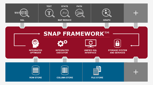 테라데이타 SNAP 프레임워크(Teradata SNAP Framework)는 엔진과 데이터 스토어를 동시에 원활하게 통합한 후, 쿼리 크로스-분석 엔진과 데이터 스토어를 최적화하여 실행한다. 혁신적인 ‘테라데이타 애스터 통합 옵티마이저(Teradata Aster Integrated Optimizer)’는 디스커버리 쿼리 요청을 파악한 뒤, 데이터 처리시 최상의 성능을 발휘할 수 있고 가장 효율적인 리소스 사용이 가능한 쿼리를 자동 실행한다. 새로운 ‘테라데이타 애스터 통합 이그젝큐터(Teradata Aster Integrated Executor)’는 분석 엔진들간의 커뮤니케이션을 통해 모든 유형의 쿼리를 조직화한다.