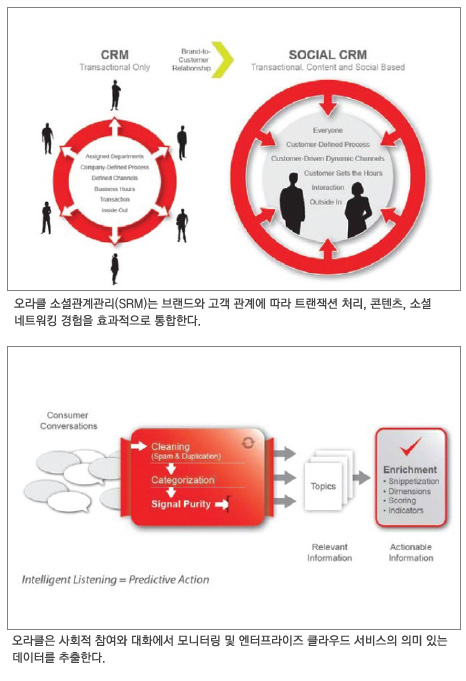 통합된 오라클 엘로콰와 소셜관계관리(SRM)의 주요 특징