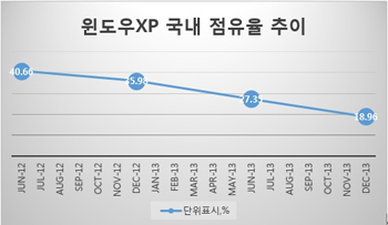 내년 4월 8일 윈도우XP 지원 종료 앞두고, 국내 윈도우XP 점유율 18%대로 감소