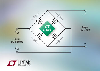 리니어 테크놀로지 코리아(대표 홍사곽)는 자동차(H등급) 및 고신뢰성 군사용(MP-등급) 버전(제품명: LT4320)으로 9V ~ 72V 시스템에 적합한 완벽한 다이오드 브리지 컨트롤러를 출시했다고 발표했다. LT4320은 풀웨이브 다이오드 브리지 정류기를 저손실 N채널 MOSFET 브리지로 대체시켜 전력 및 전압 손실을 10배 또는 그 이상으로 감소시킨다.