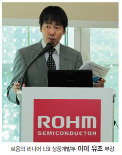 로옴세미컨덕터코리아는 최근 기자간담회를 열고 신제품 발표와 함께 자동차 분야에서의 위치와 전략을 소개했다. 신제품 발표차 방한한 로옴의 리니어 LSI 상품개발부 이데 유조(井手 雄三) 부장은 “자동차 및 산업 분야의 매출 비중을 40%까지 끌어올리는 것이 로옴의 전사적 명제로 자동차 분야는 성장 전략에 중요한 부분을 차지한다”며 “자동차에 대한 로옴의 진심을 보여주는 하나의 예가 모든 애플리케이션에 대응할 수 있는 LDO 시리즈”라고 말했다.