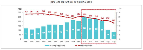* 對日 수입의존도(%): (’05) 27.1 → (’10) 25.2 → (’13) 20.8 → (’14.상) 18.0