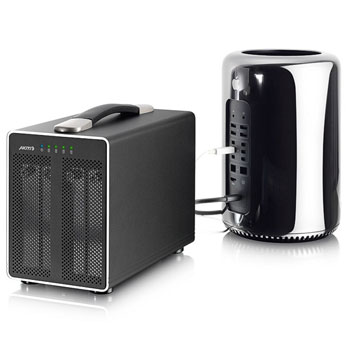 썬더볼트1(10Gb/s) 대비 2배 빨라진 20Gb/s의 빠른 전송속도를 자랑하는 ‘썬더2 쿼드’는 2개의 썬더볼트2 포트가 탑재되어 병렬 방식으로 최대 5대까지의 썬더볼트 장치를 데이지 체인방식으로 연결해 사용할 수 있으며, 사용자의 필요에 따라 대용량의 저장공간이 필요한 경우 3.5형 HDD를, 빠른 속도가 필요한 경우 2.5형 SSD를 선택해 사용할 수 있다. 또한 이동식 트레이를 제공하여 드라이브의 설치와 교체가 매우 간단하다.