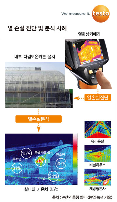 테스토코리아 관계자는 “열화상 카메라를 이용하면 비닐하우스 등 농업 시설의 에너지 손실을 정확히 점검할 수 있으며 이는 곧 에너지 절감으로 이어진다”며 “이러한 이유로 농촌진흥청 외에도 여러 지자체에서 열화상 카메라 사용이 늘고 있는 추세”라고 말했다.