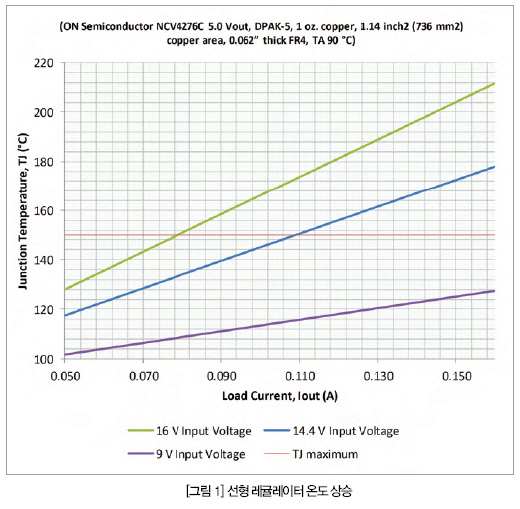 출력 전력이 높아지면 그에 비례하여 전력 손실도 증가하므로 시스템 온도가 상승한다. 전력 손실이 증가하면 열계수가 온도 상승으로 이어지는 만곡점에 도달하므로 접합 온도가 절대 최대치와 만나게 된다(그림 1). 이 단계를 넘어서면 신뢰성에 영향을 미칠 수 있으므로 SMPS(Switched Mode Power Supply)가 반드시 필요하게 된다. 전형적인 SMPS가 효율 요건을 충족시킬 수 있긴 하지만 낮은 대기 전류 요건을 준수하지는 못한다. 그러므로 하이브리드 전원 공급이 이러한 난제에 대한 해답이 될 수 있다.