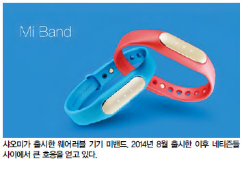 중국 기업 샤오미가 웨어러블 기기를 통해 국내 시장에서 인기몰이를 하고 있다. 중국산 저가제품이란 이유로 방심하던 국내 기업들도 기대 이상의 판매량과 고객반응에 놀라는 눈치다. 스마트폰 보조배터리를 통해 기반을 다진 샤오미 열풍은 웨어러블, 스마트폰, TV로 나아가 국내외 가전시장 잠식을 위해 경쟁의 속도를 높이고 있다. 중국산 저가제품에 대한 통념은 미밴드를 통해 산산이 부서졌다.