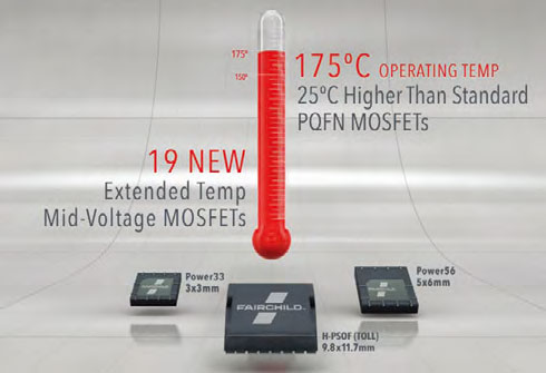 전력 반도체 기업 페어차일드는 제조사들이 제품의 신뢰성과 성능을 향상시킬 수 있도록 하기 위해 기존보다 25 °C 높은 175 °C에서 작동할 수 있는 ET(확장 온도) 중전압(mid-voltage) MOSFET(금속 산화막 반도체 전계 효과 트랜지스터) 제품을 출시했다고 지난 3월 17일 밝혔다.