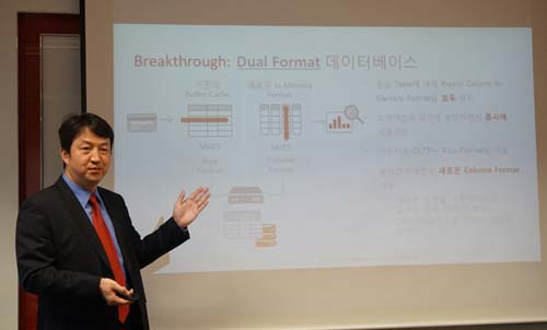 오라클은 지난해 오라클 데이터베이스 인메모리를 출시했다. 이 제품은 로우(Row) 포맷과 컬럼(Column) 포맷을 결합시켜 하나의 엔진으로 빠른 온라인 트랜잭션 처리(OLTP) 및 온라인 분석 처리(OLAP)를 동시에 제공하는 업계 최초 아키텍처다. 따라서 트랜잭션 업무가 일어나는 상황에서도 실시간 데이터 분석이 가능하며, 정확한 데이터 기반 의사결정이 가능하다.