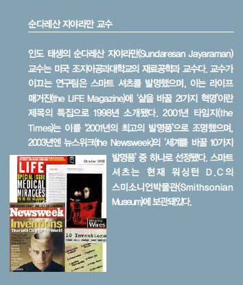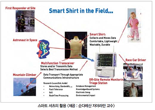 국가기술표준원이 주최해 250여명의 관련 분야 전문가와 대중들이 참석한 ‘웨어러블 스마트디바이스 포럼’에선 웨어러블의 시장 전망과 차세대 소재·공정 기술을 비롯한 미래상을 함께 공유했다. 이날 행사에서 강연자로 참석한 미국 조지아공대의 순다레산 자야라만 교수는 ‘Wearables in the Connected World : Harnessing Big Data in Healthcare’라는 주제로 무선통신기술과 융합된 옷 형태의 웨어러블 기기가 헬스 케어 분야에 혁명과 같은 변화를 일으킬 것으로 예상했다. 뉴스위크(the Newsweek)의 ‘세계를 바꿀 10가지 발명품’중 하나인 스마트셔츠를 개발한 순다레산 자야라만 교수의 강연을 전한다.
