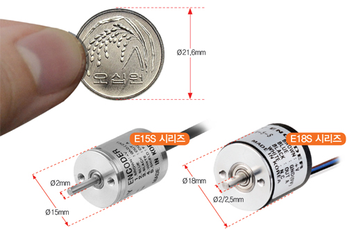 E15S 시리즈는 국내 최초로 개발된 외경 Ø15mm 사이즈의 초소형 엔코더로 모터의 1 회전 당 36펄스의 분해능과 3,000prm의 최대 허용 회전이 가능하다. 약 14g의 경량을 실현한 본 제품은 PTZ(상/하/좌/우/줌) CCTV에서 카메라 렌즈 사이의 간격 및 초점 거리, 방향 조정에 주로 적용될 수 있다.